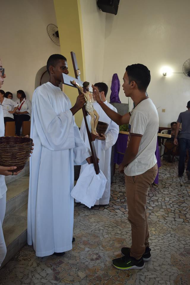 Em ato simbólico, os católicos participaram da veneração da santa cruz, momento em que esta foi apresentada solenemente à comunidade, demostrando a fé e o amor a Cristo.